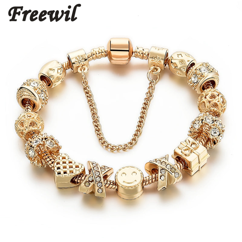 2016 New Arrival Heart Charm Bracelets For Women Gold Chain Bead Bracelets & Bangles Original Pulsera SBR160131