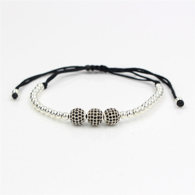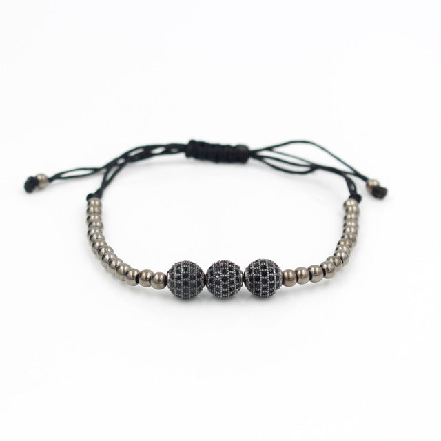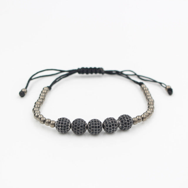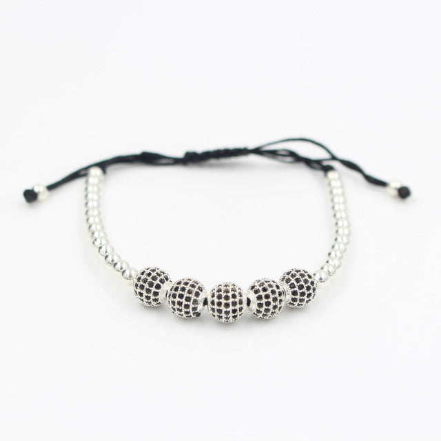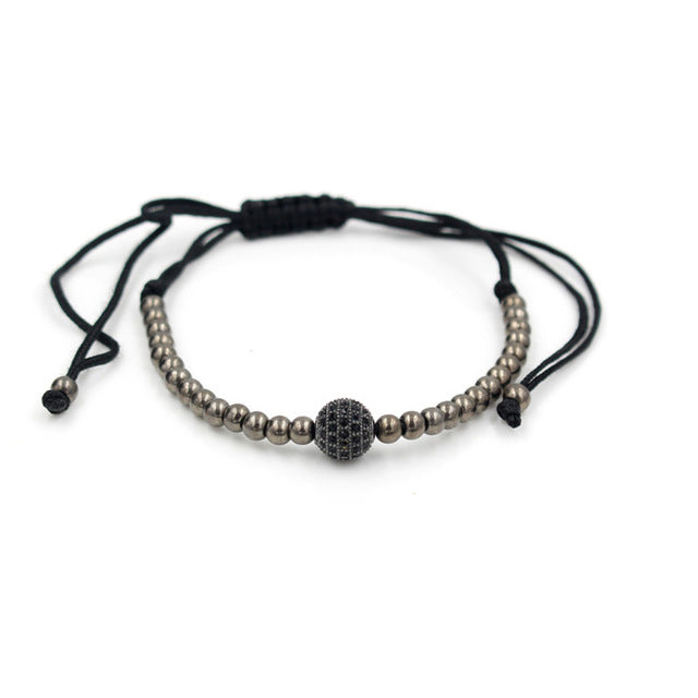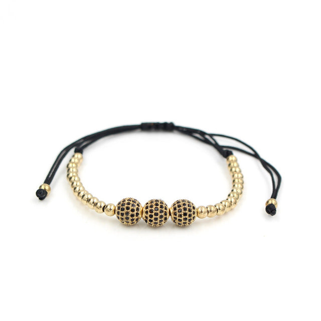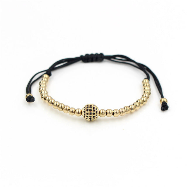 Drop Shipping Gold-Color Anil Arjandas 8mm Pave Setting Black CZ Crystal Copper Ball Bead Weave Braiding Bracelet Gift Jewelry