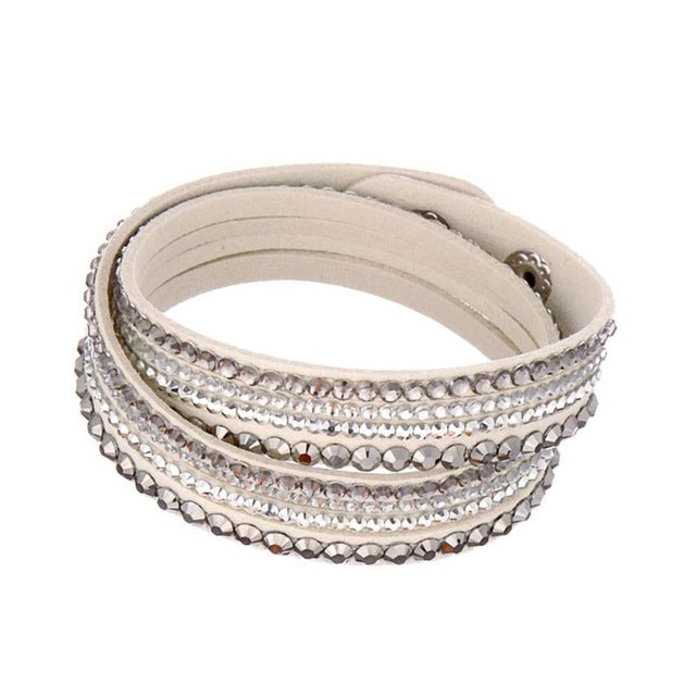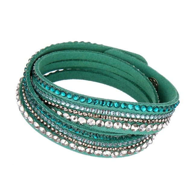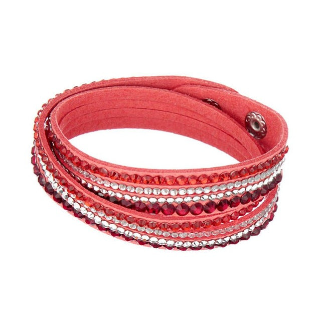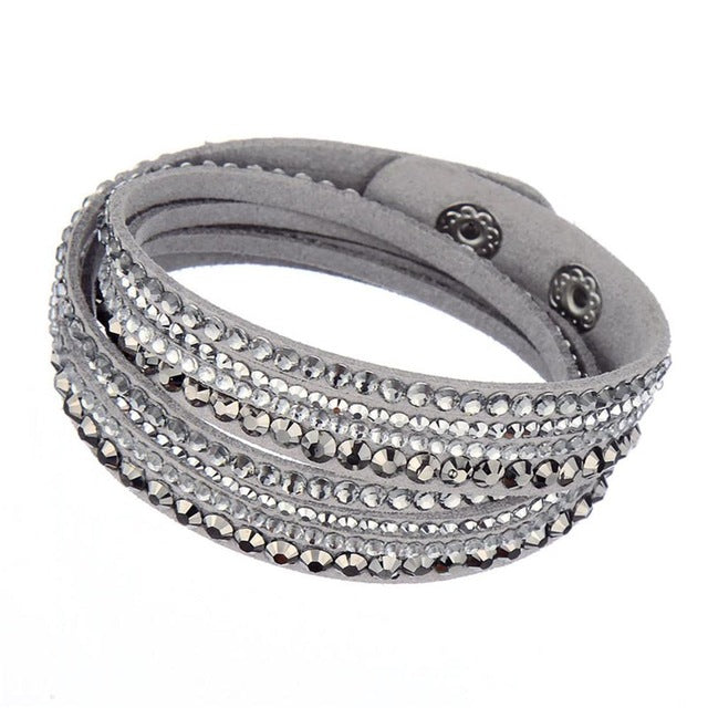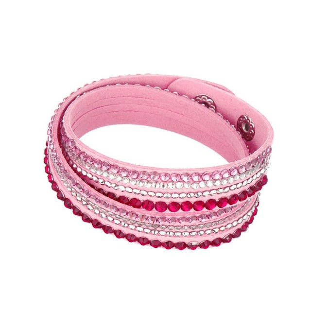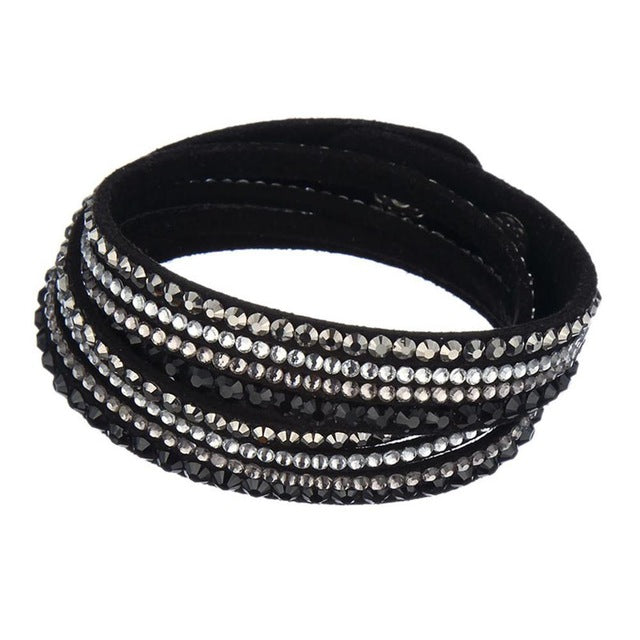LNRRABC Women Fashion European Charm Rhinestone Crystal Leather Bracelets & Bangles for Women Friendship bracelet Jewelry Gift
