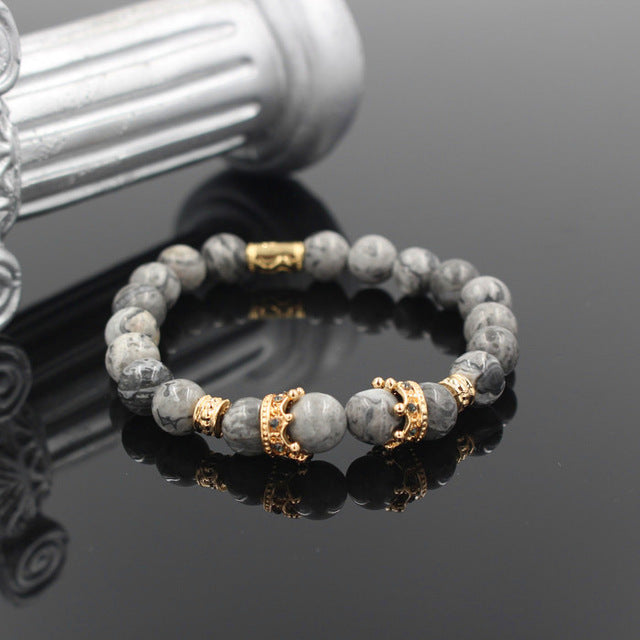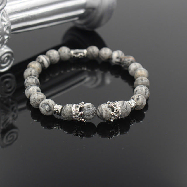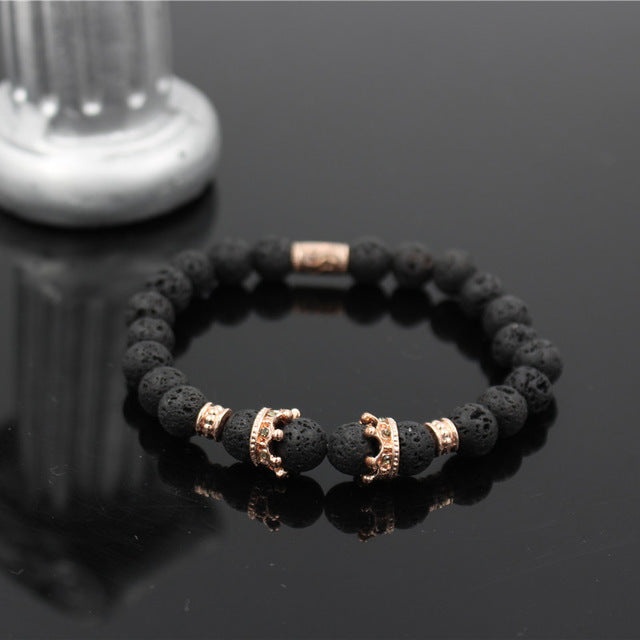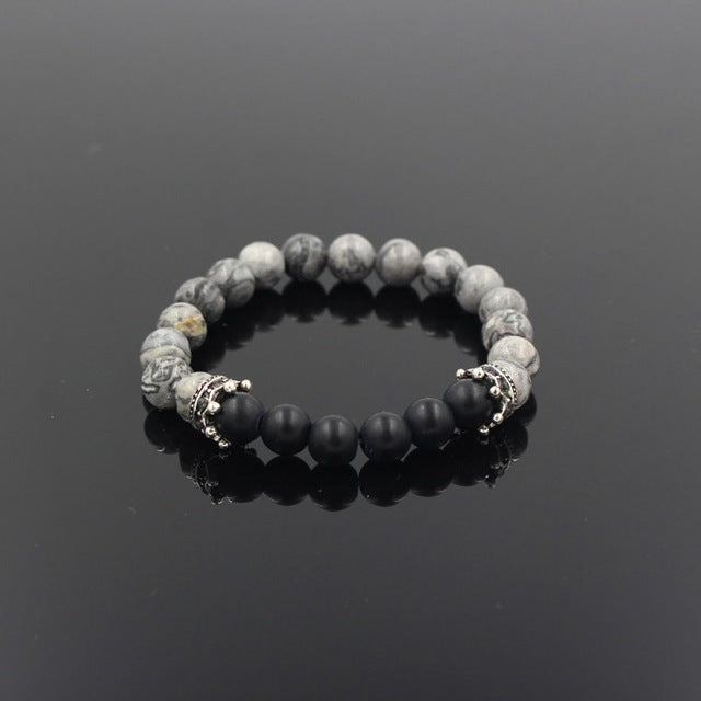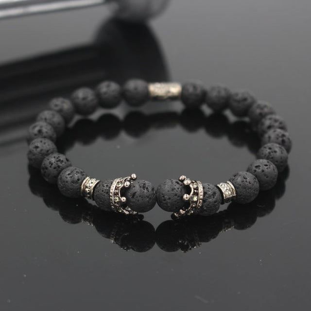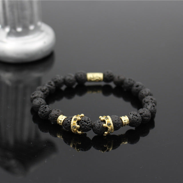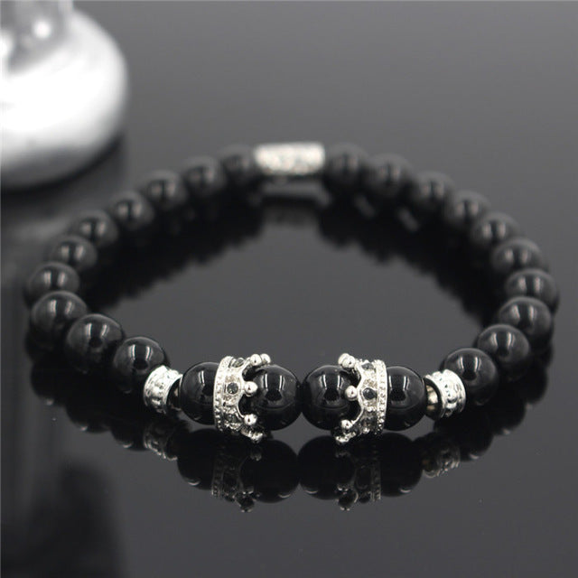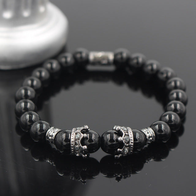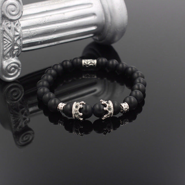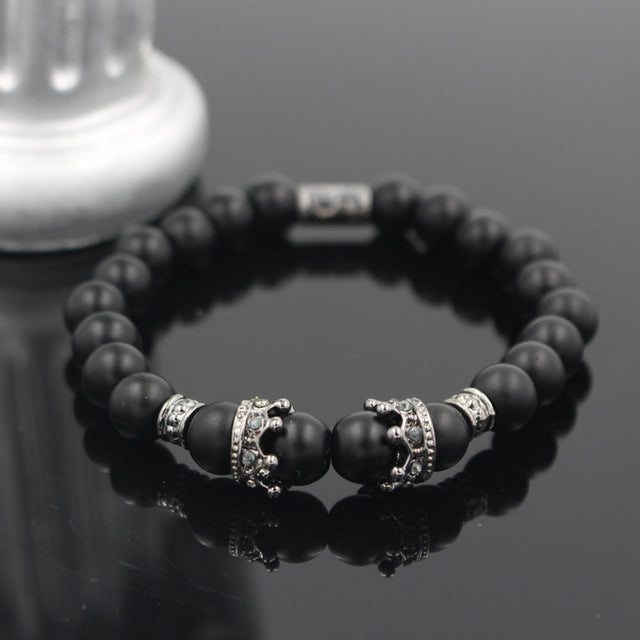 New Fashion Matte Onyx Stone Bead Bracelet For Men Popular Boys Imperial Crown Braiding Brand Macrame Charm Bracelet Gift RB2794