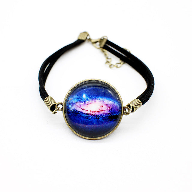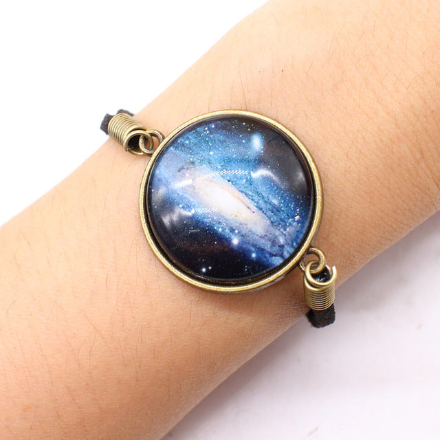 Star Leather charm Bracelet big Space Galaxy Cabochon rope chain Bracelet Pulseira Feminino round glass statement Jewelry unisex