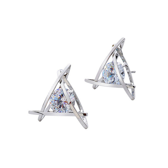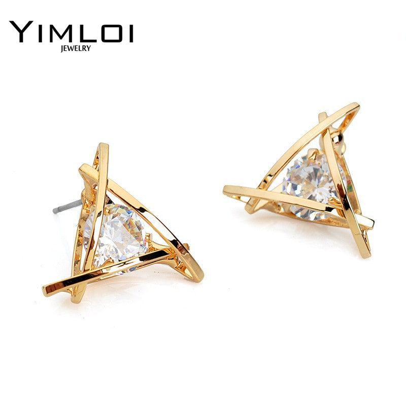 European Luxury Austrian Crystal Zircon Gold Triangle Earrings For Women 2016 Fashion High-end Elegant Stud Earrings Gifts E296
