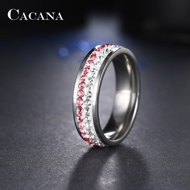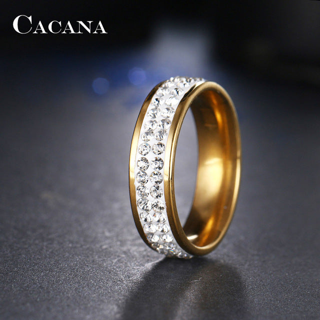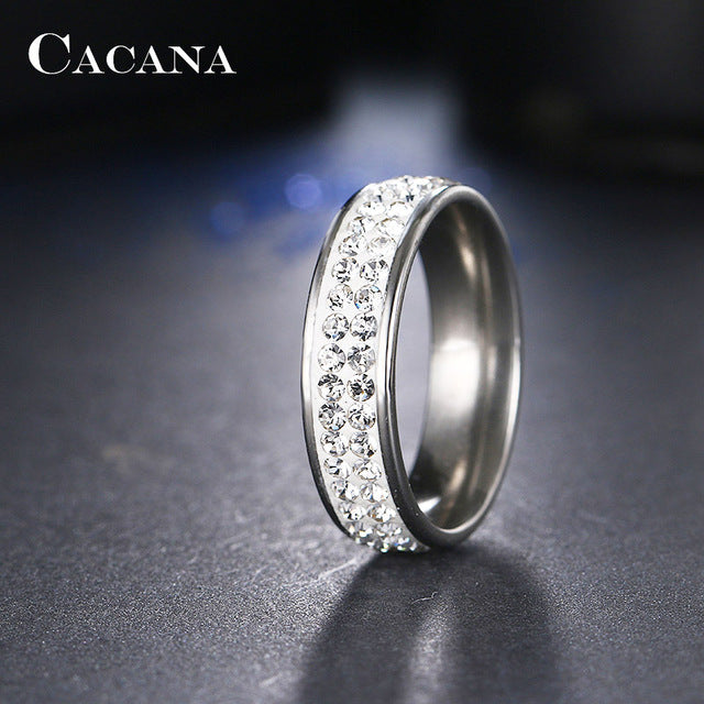 CACANA Stainless Steel Rings For Women Double Row CZ Fashion Jewelry Wholesale NO.R101 102 103