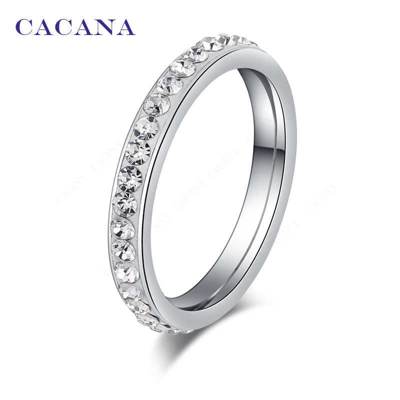 CACANA Stainless Steel Rings For Women Small CZ Surround Fashion Jewelry Wholesale NO.R19