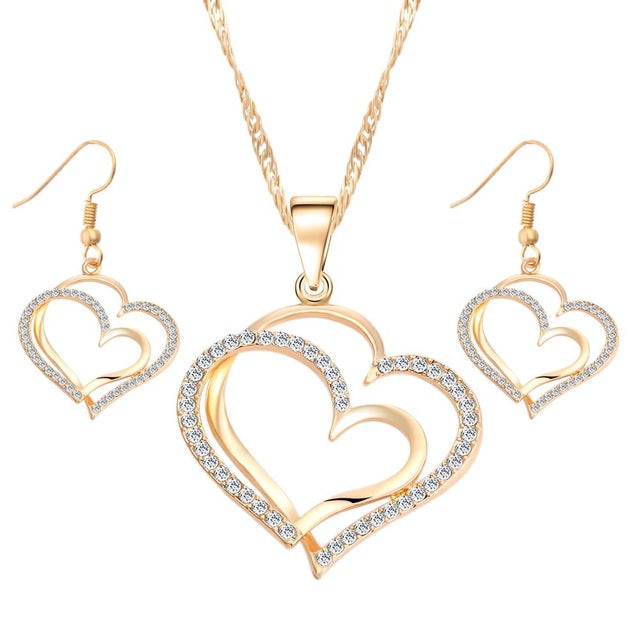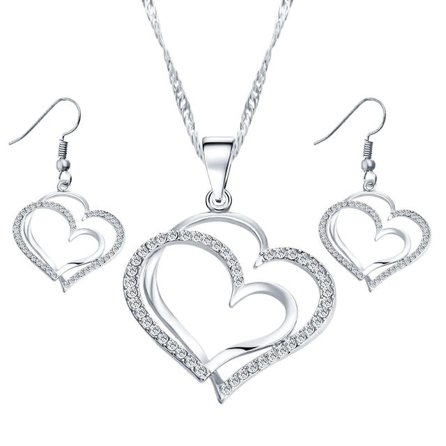17KM Romantic Heart Pattern Crystal Earrings Necklace Set Silver Color Chain Jewelry Sets Wedding Jewelry Valentine's Gift
