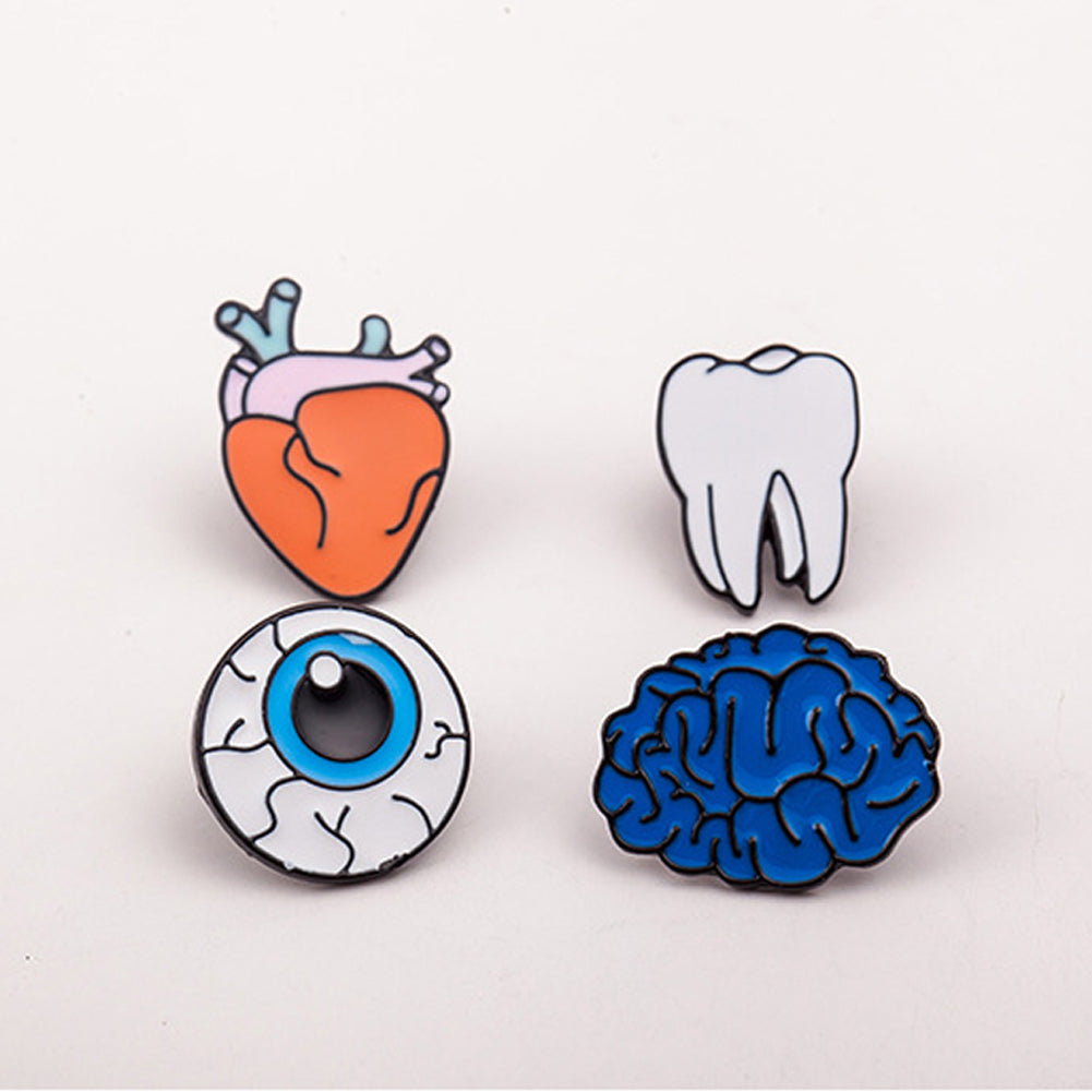 1PC Zinc Alloy Enamel Eye Teeth Brain Heart Brooches Pins Human Body Organs For Womens Jewelry Needle Brooch Lapel Pin Collar