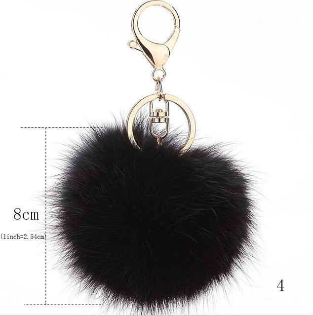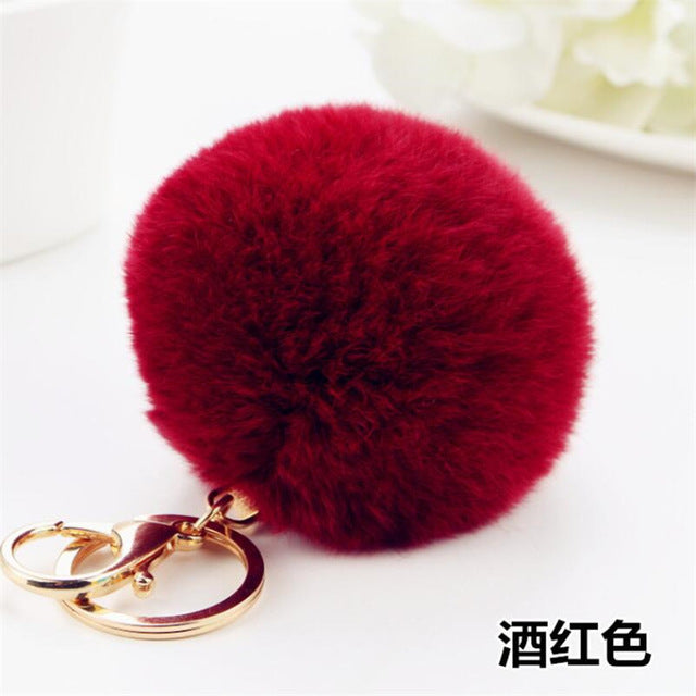 2016 Fashion 13 Colors Rabbit Fur Keychain Ball PomPom Cell Phone Car Keychain Pendant Handbag Gold/Silver Metal Charm Key Ring