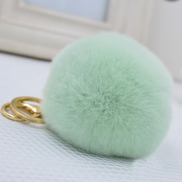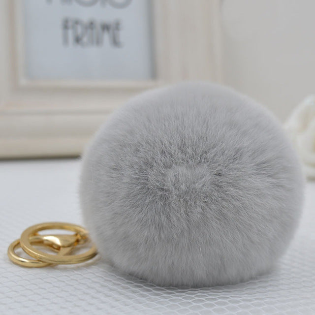 8CM Genuine rex Rabbit fur ball keychain Car key ring Bag Pendant fur pom fluffy key chains