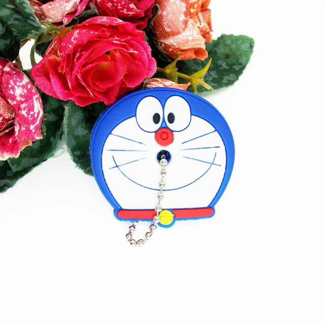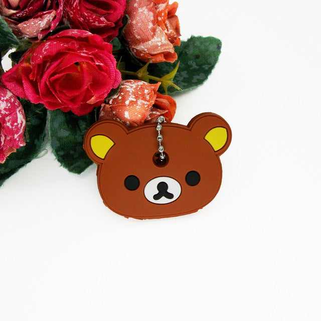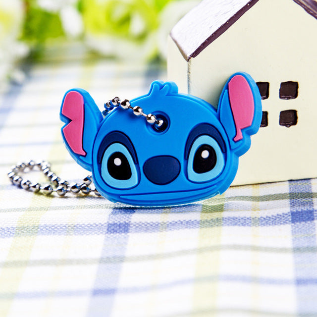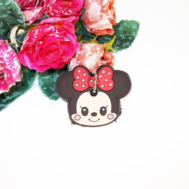 Anime Silicone Key Cap Cat Minion Key Chain Women Bag Charm Key Holder Mickey Key Ring Owl Keychain Hello Kitty Stitch Key Cover
