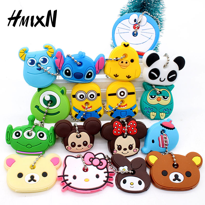 Cartoon Anime Minion Cute Owl Key Cover mickey stitch Bear Keychain Silicone Hello Kitty porte clef cat cap minne key protection