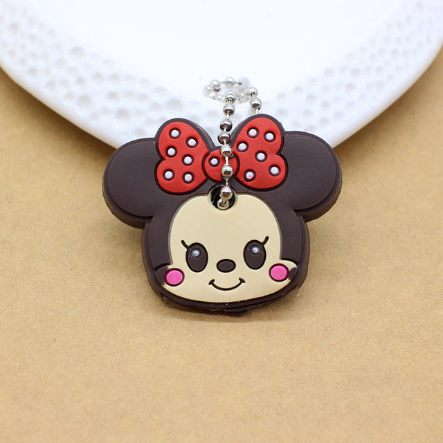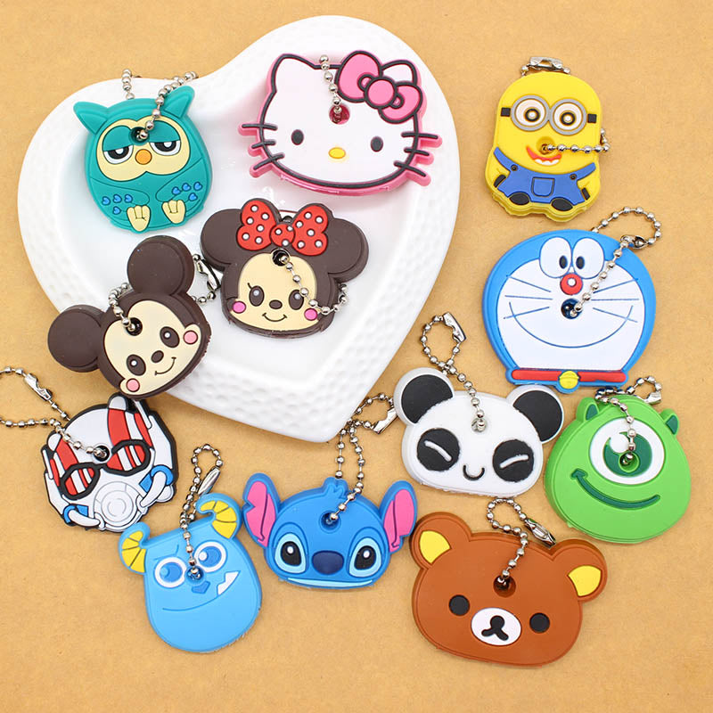 Cute Anime Cartoon Minion Key Cover Owl Bear Keychain Silicone Stitch Pendant porte clef Unisex Key Caps Minnie monster Chain