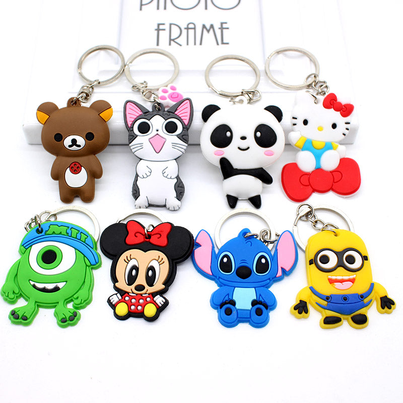 Cute Cartoon mickey minne Keychains Hello Kitty Cheese cat Bear Key chains Bag Pendant cat Owl Minion key Pendant Anime jewelry