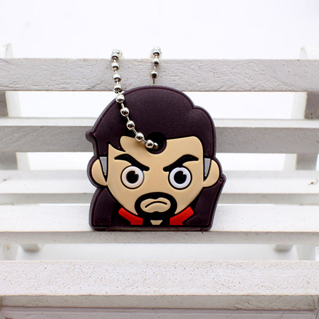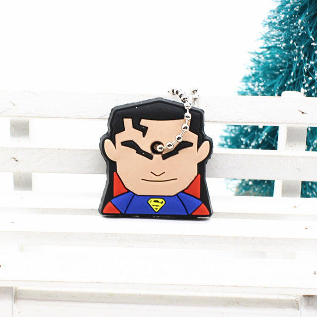 cute super hero Silicone Cartoon Key Cover batman spiderman Keychain face mario Pendant captain Key Chain porte clef for women