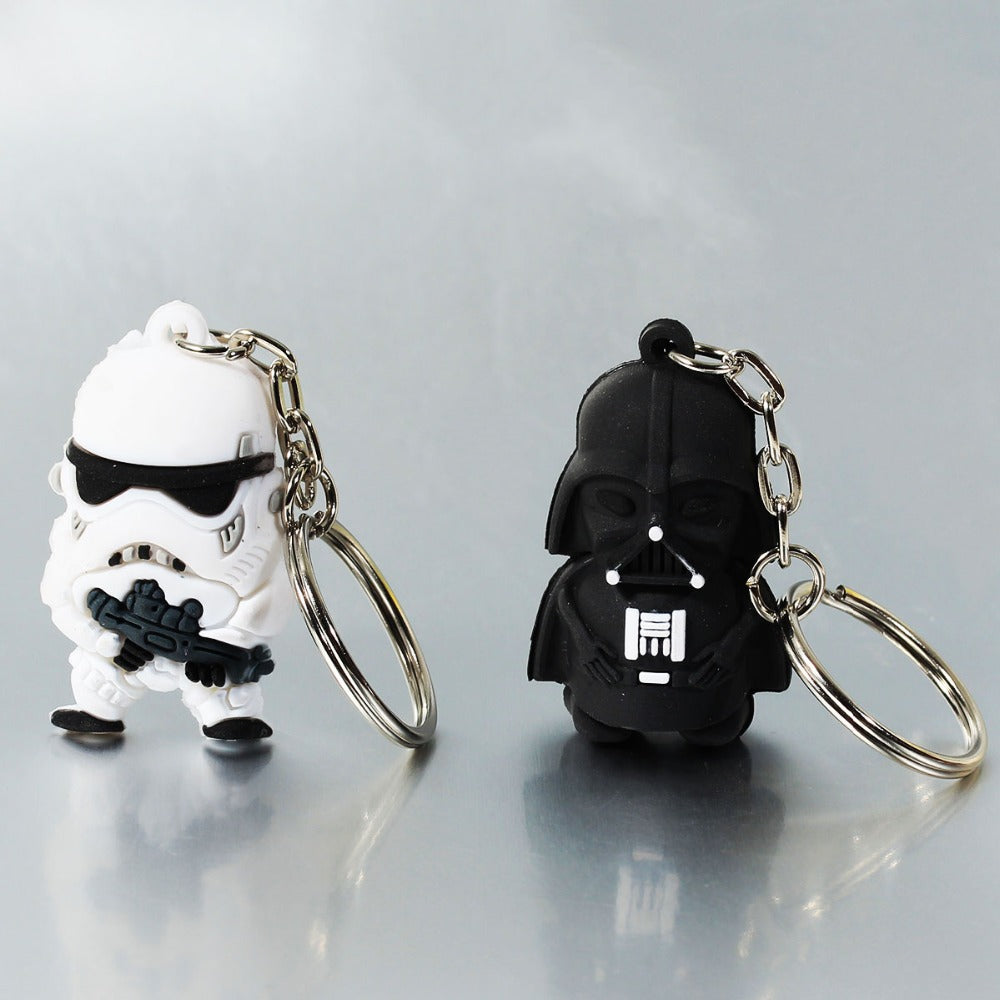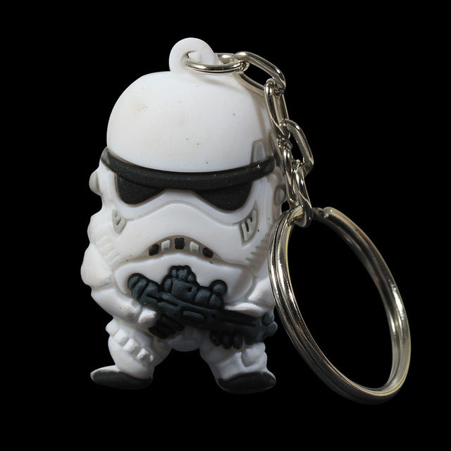 Doreen Box New Star War Silver Tone Soldier Warrior Pendant Round Iron Key Chains White Black 1 PC