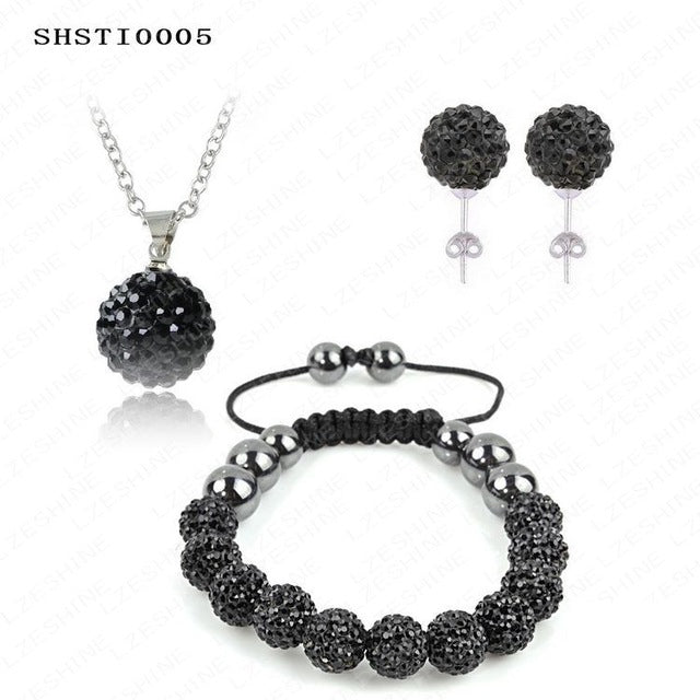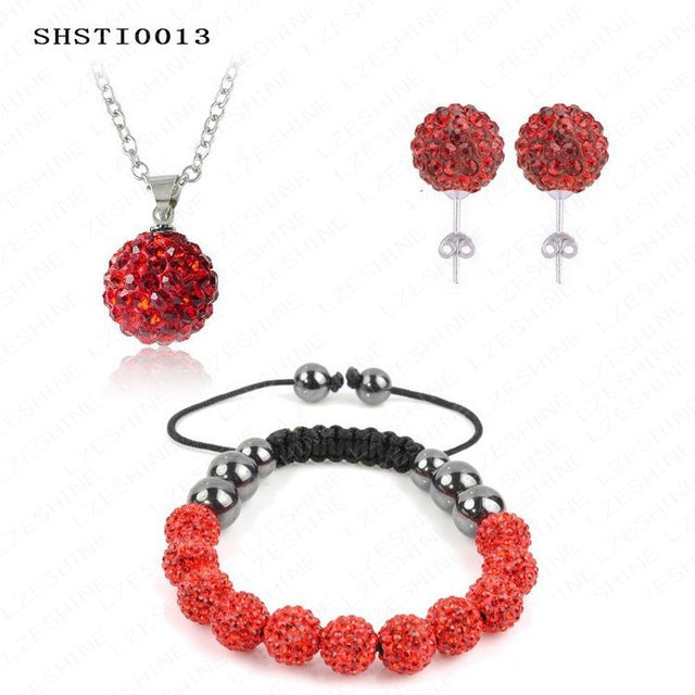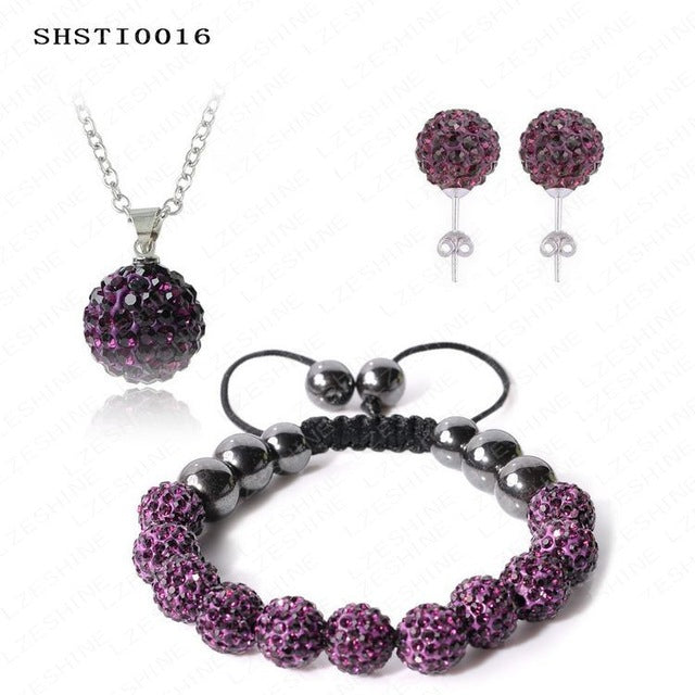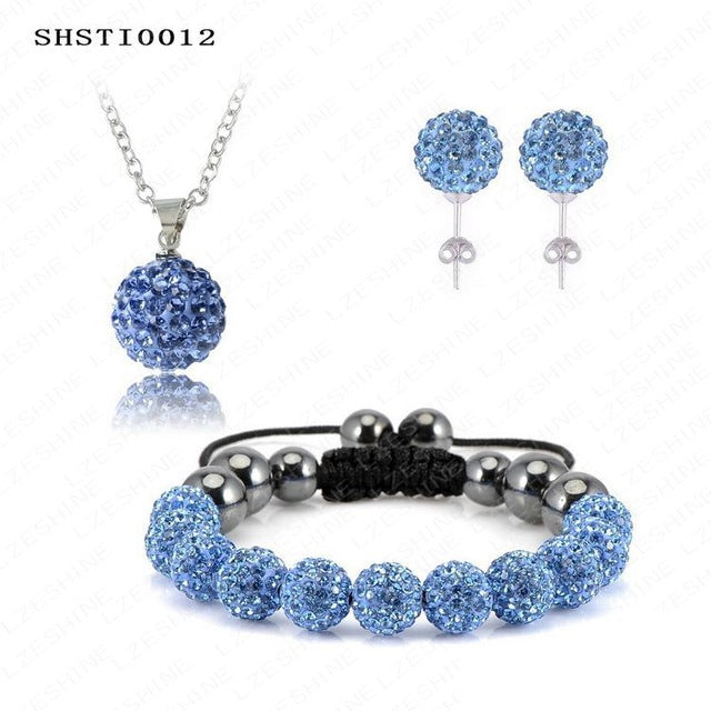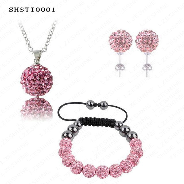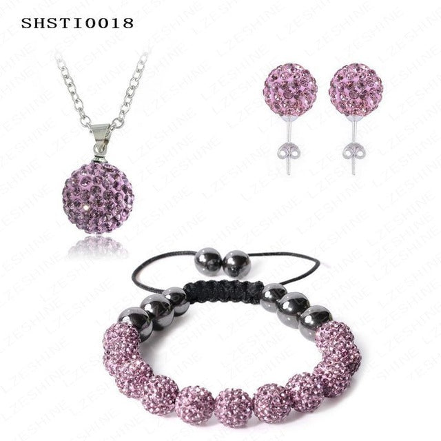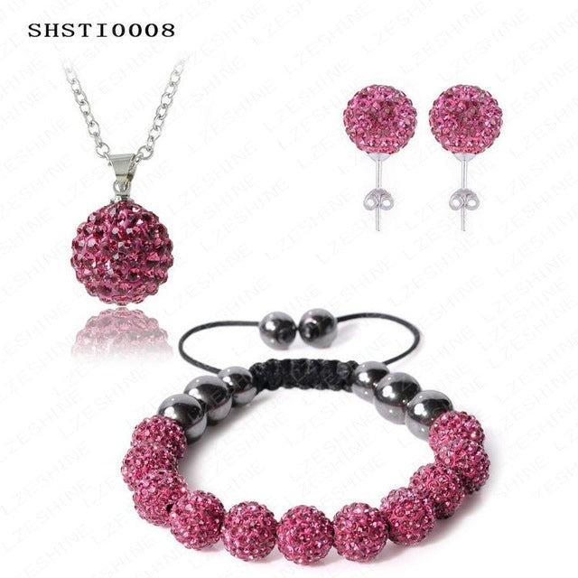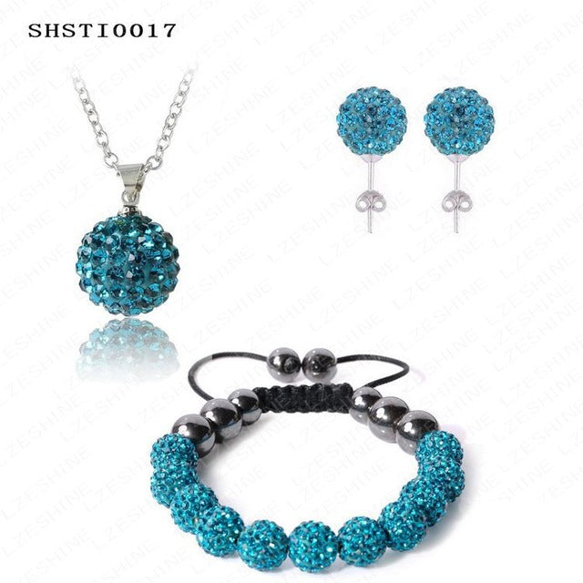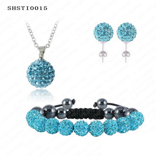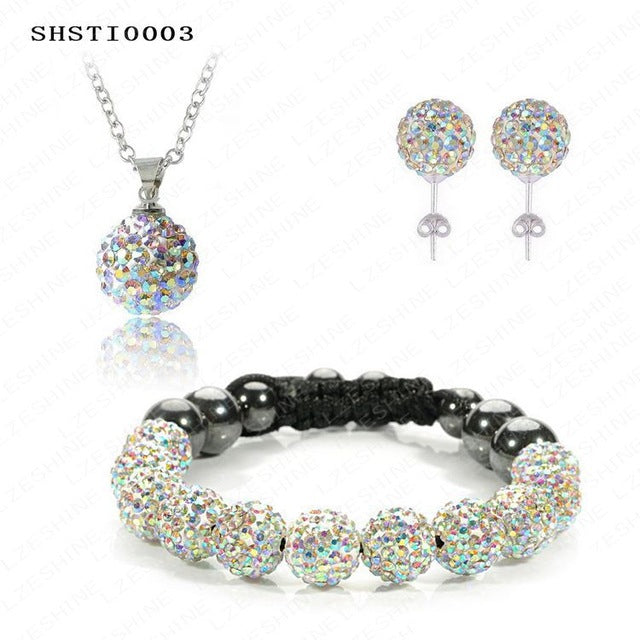 Fashion Crystal Shamballa Set Necklaces & Pendants/Bracelet/Earring Studs Jewelry Set With Disco Balls for Women SHSTImix1
