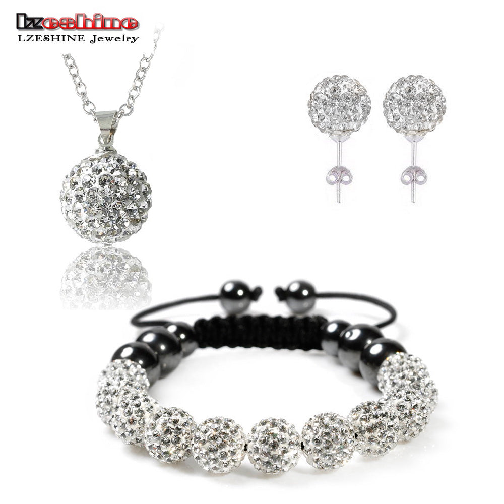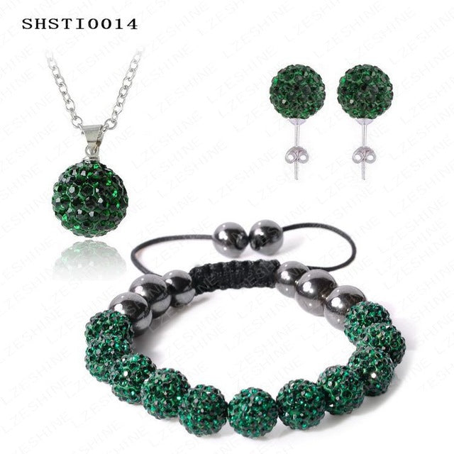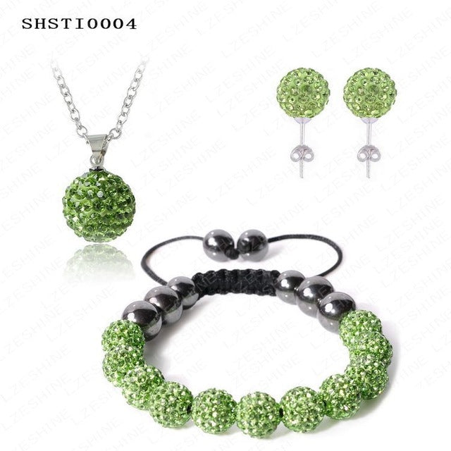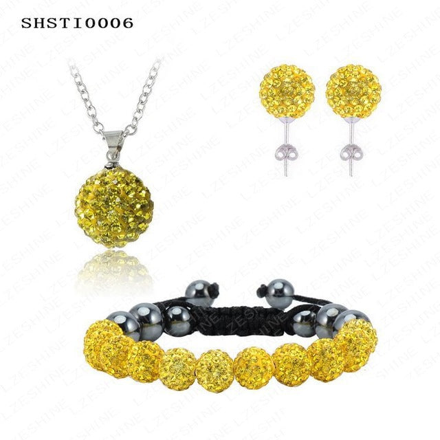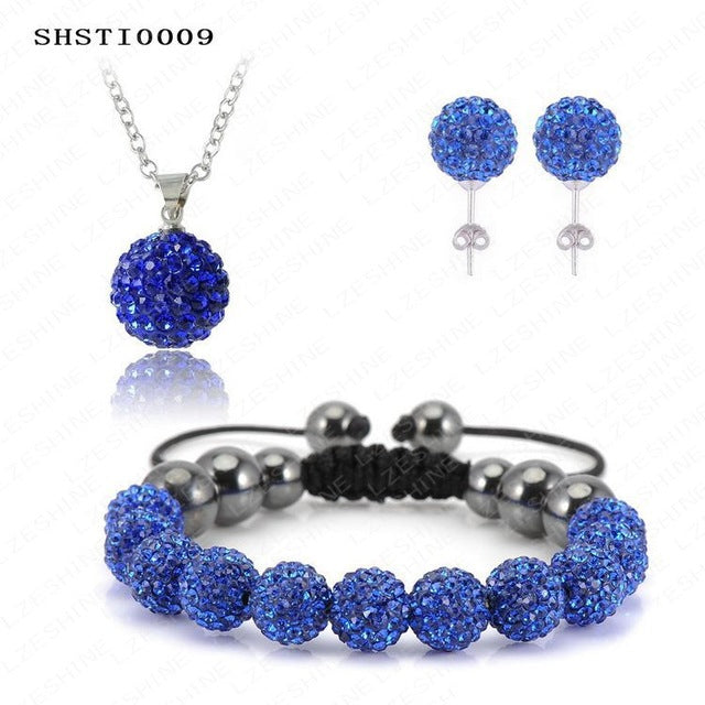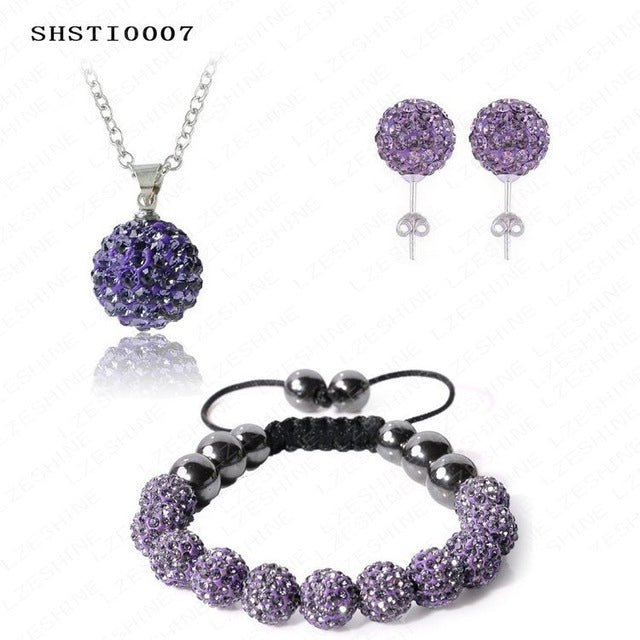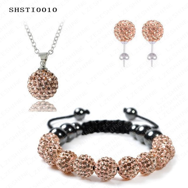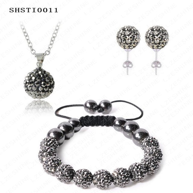 Fashion Crystal Shamballa Set Necklaces & Pendants/Bracelet/Earring Studs Jewelry Set With Disco Balls for Women SHSTImix1