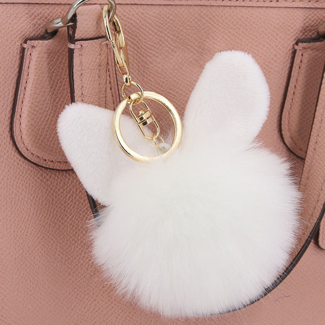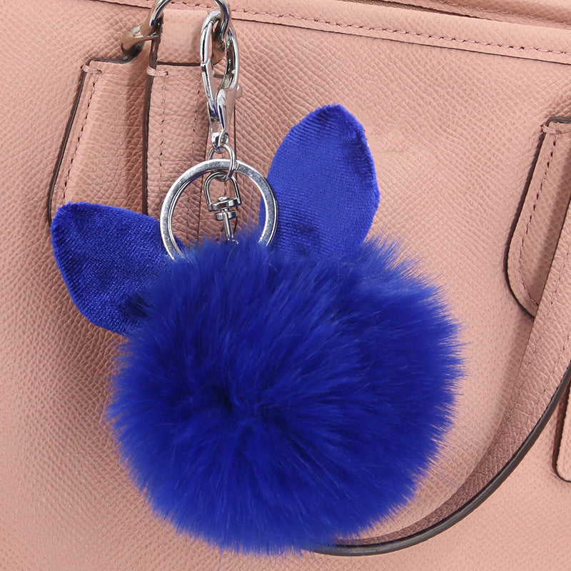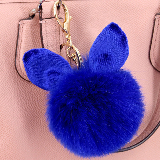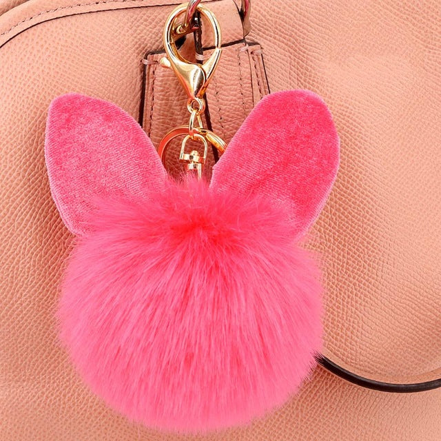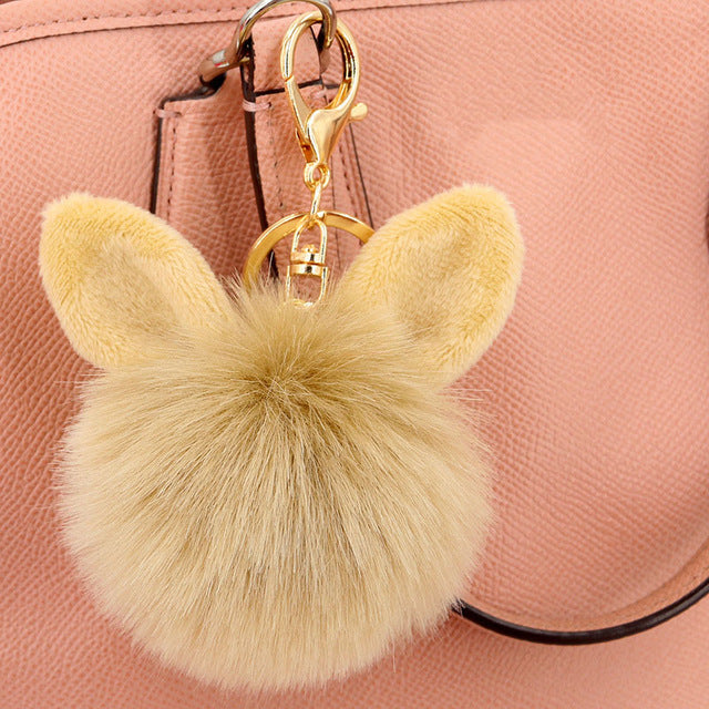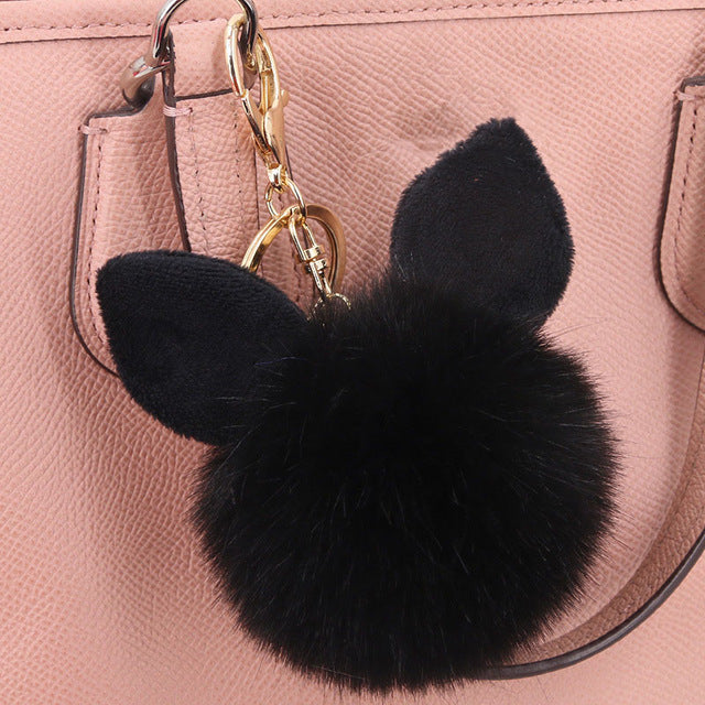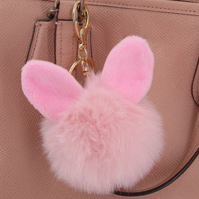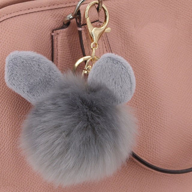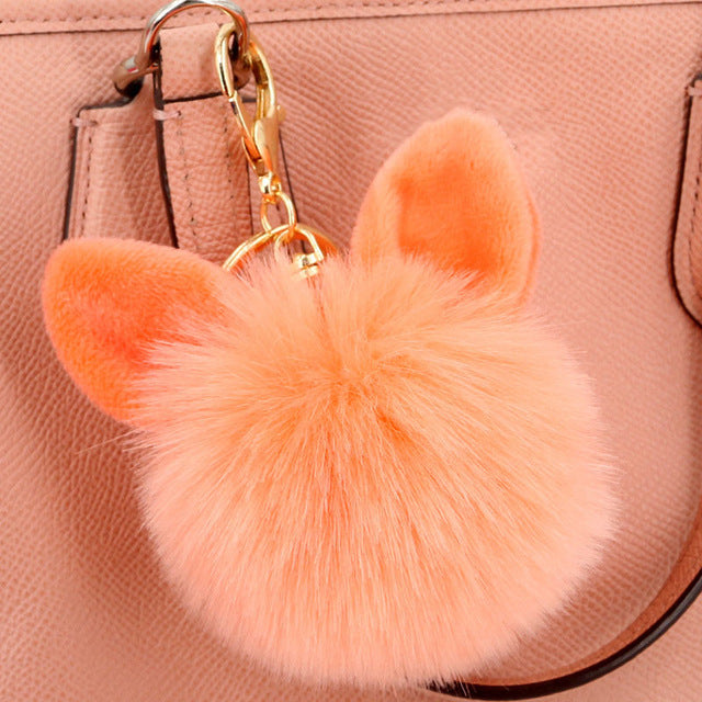 Fashion Pompom Keychain Round Fake Rabbit Fur Ball Key Chain With Ears Cute Women Charms Bunny Keychains Keyring Decorator