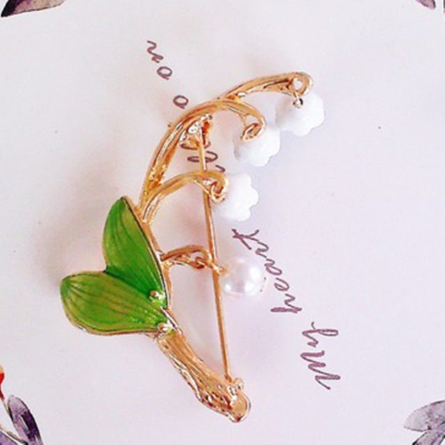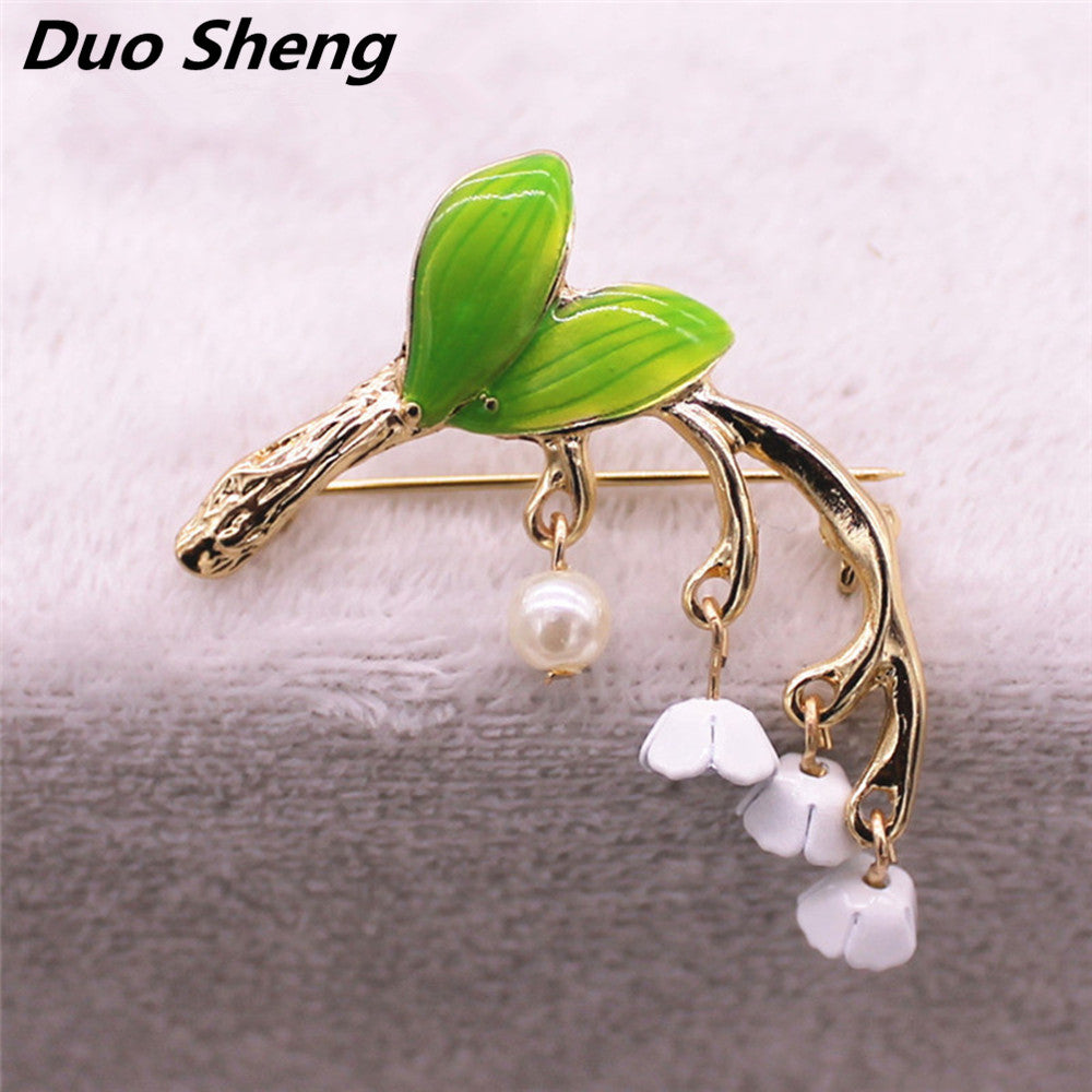 Forest series green enamel plant style drop glaze alloy tree branch Imitation pearl girl collar pin brooch factory direct sale