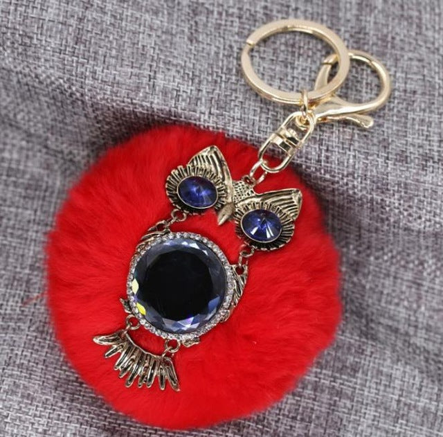 Hang Bag Lovely Ball Keychain The Owl Car Accessories Fashion Lady Metal Key Chain Creative Tide