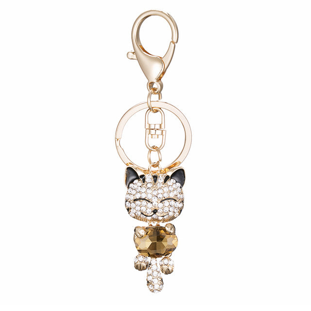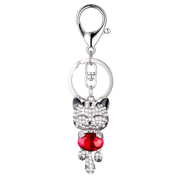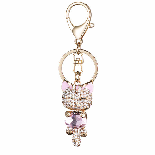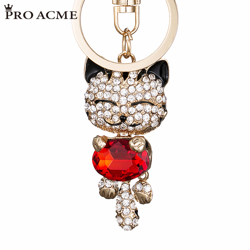 PRO ACME Crystal Rhinestone Metal Cat Keychain Novelty Gifts Couple Key Chain Car Key Ring Women Hangbag Charms Pendant PWK0393