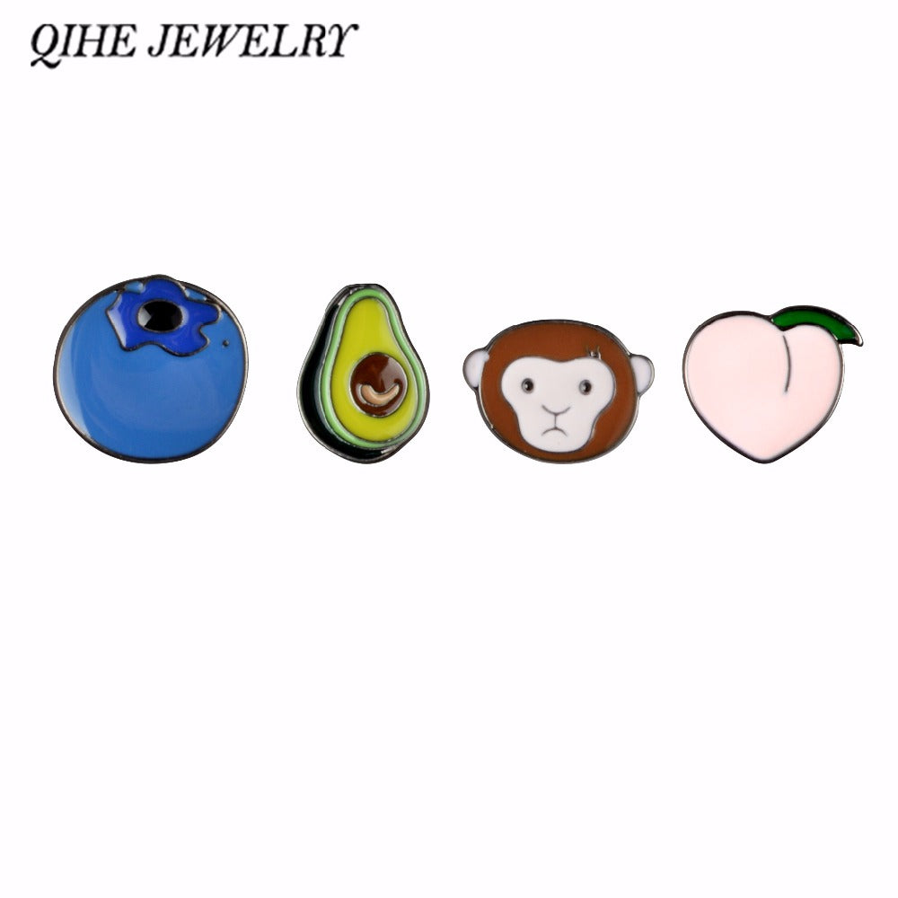 QIHE JEWELRY Avocado Monkey Peach Blueberry Metal Lapel Pins Hard Enamel Pin Cute Badge Fashion jewelry