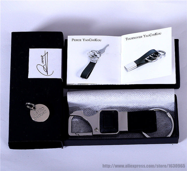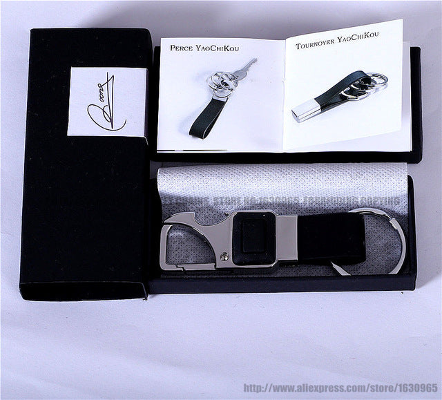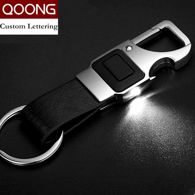QOONG Custom Lettering Men Leather Key Chain Metal Car Key Ring Multifunctional Tool Key Holder LED,Bottle Opener Keychain 2-001
