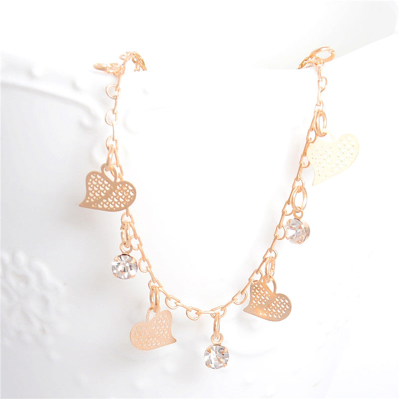 SHUANGR Best Deal Women Beach Anklets Heart Crystal Rhinestone Ankle Chains Foot Jewelry Anklets Foot Chain Jewelry Gift 1PC
