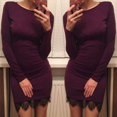 2017 Women Casual Vestidos Fit Ladies Elegant lace solid bodycon dress Christmas evening party long sleeve winter dress LX067